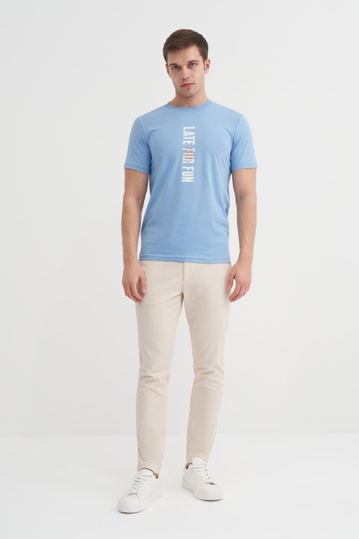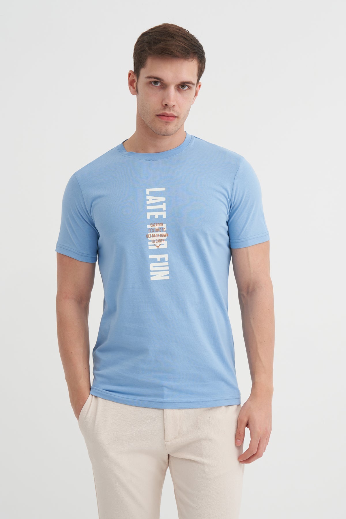 Slim Fit Bisiklet Yaka Pamuklu Baskılı Tişört 4156