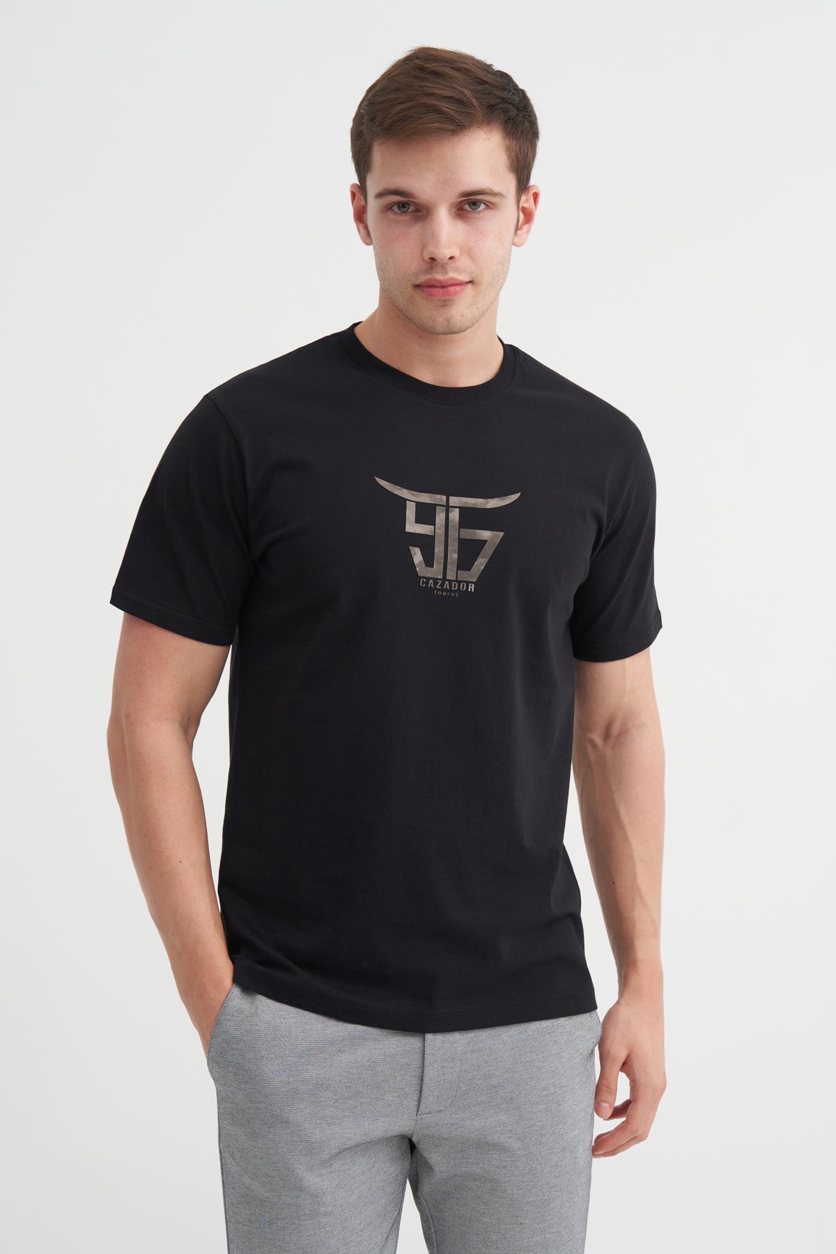 Bisiklet Yaka Regular Fit Pamuklu Baskılı Tişört 4160 - Cazador