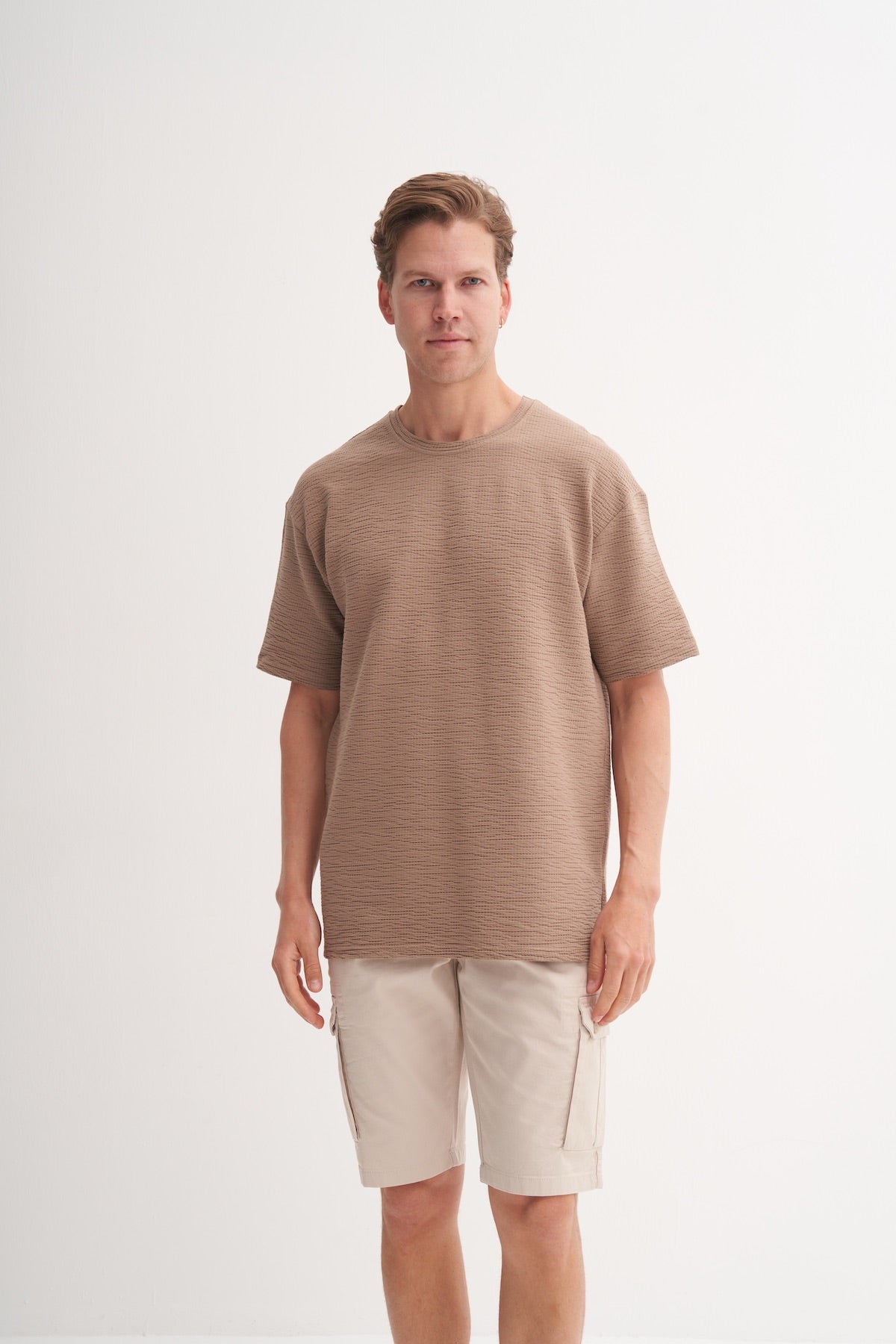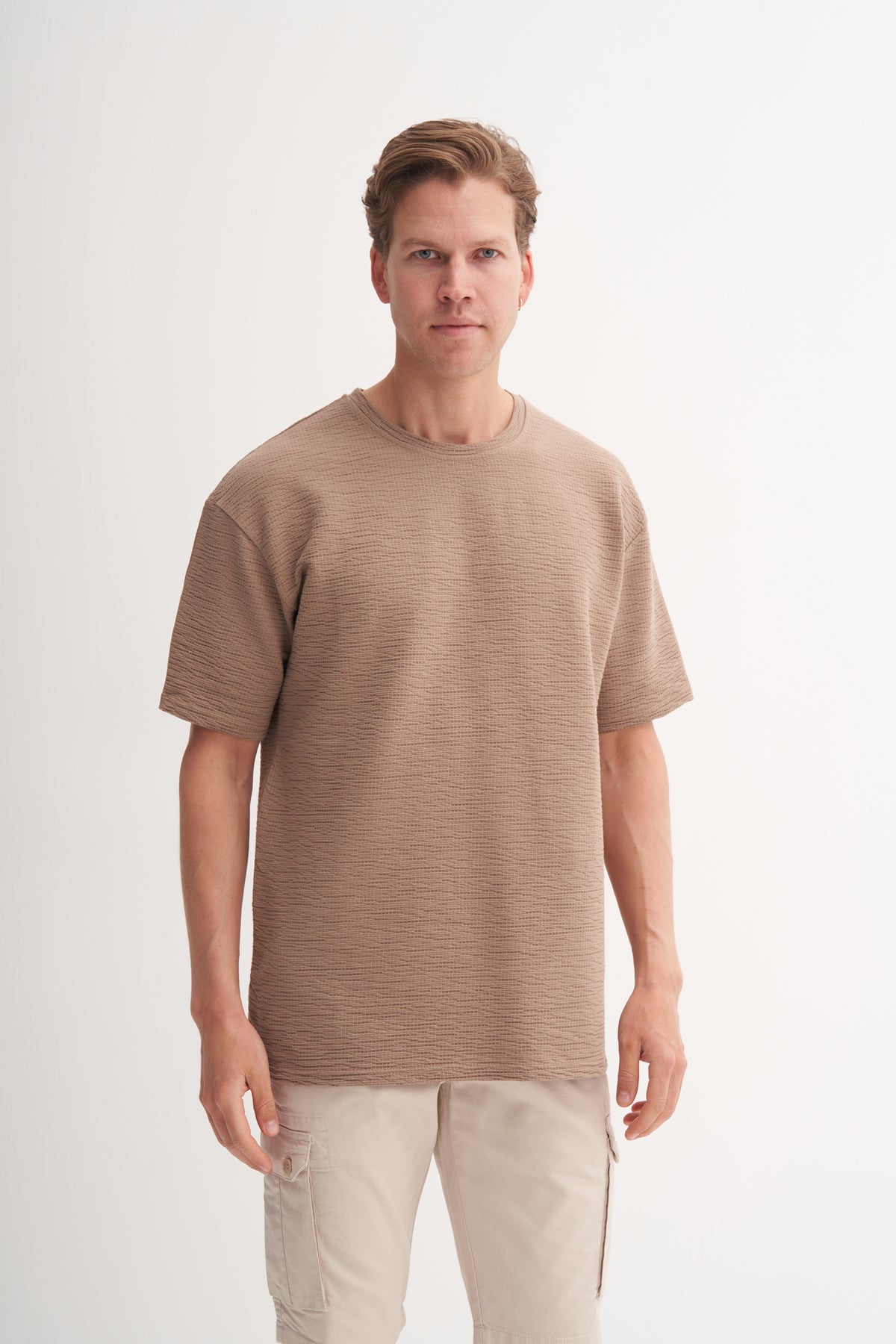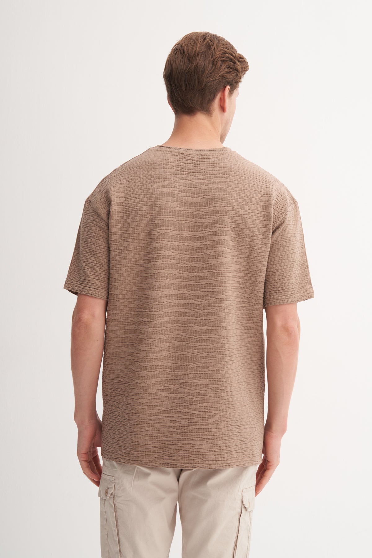 Bisiklet Yaka Relax Fit Petek Desenli Tişört 4181 - Cazador