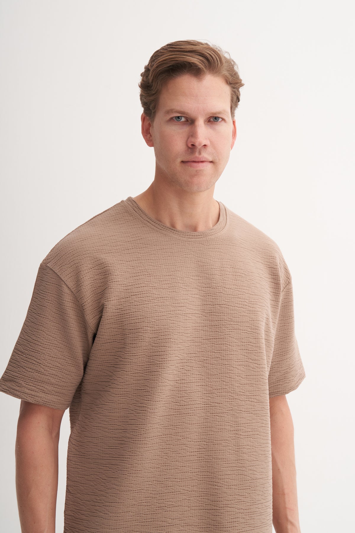 Bisiklet Yaka Relax Fit Petek Desenli Tişört 4181