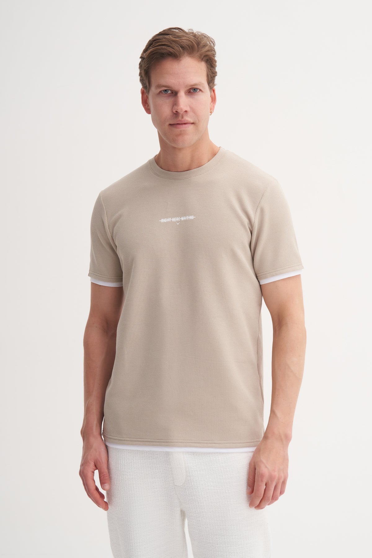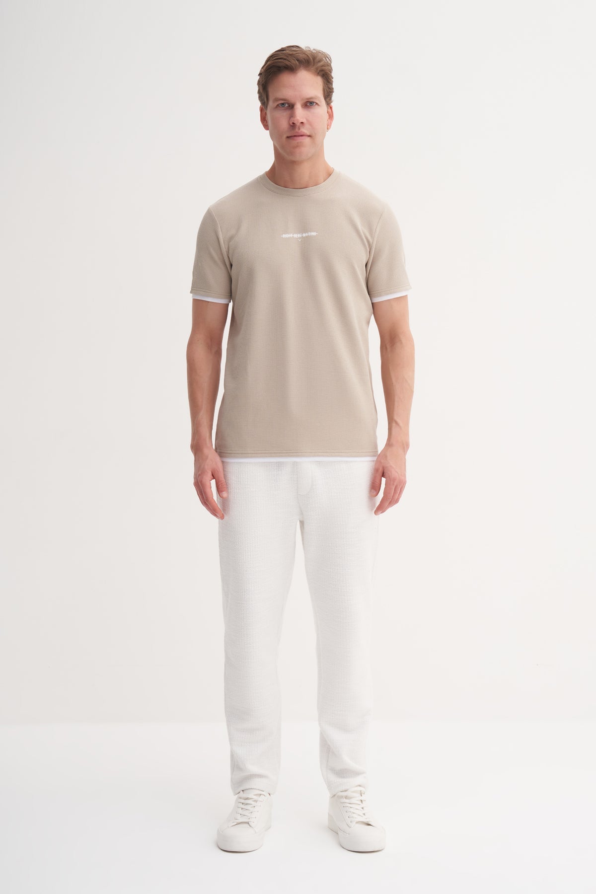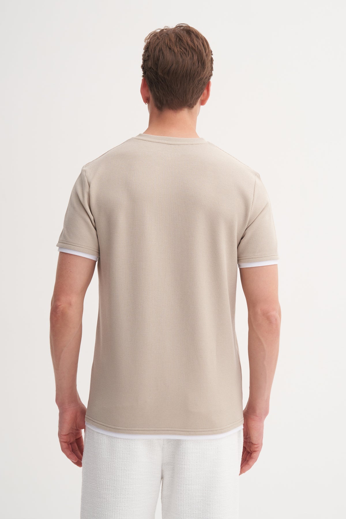 Slim Fit Bisiklet Yaka Waffle Yumuşak Dokulu Tişört 4243