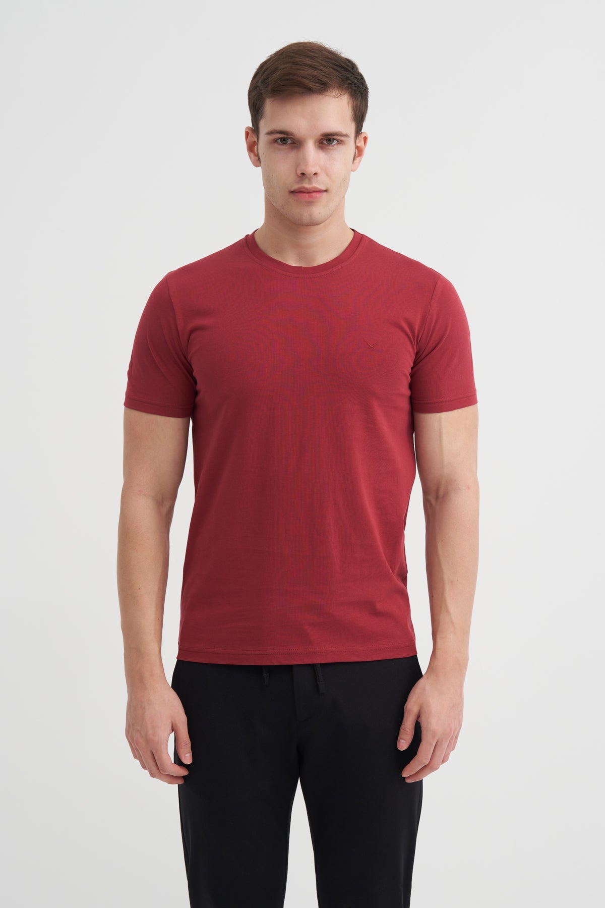 Slim Fit Bisiklet Yaka Pamuklu Düz Tişört