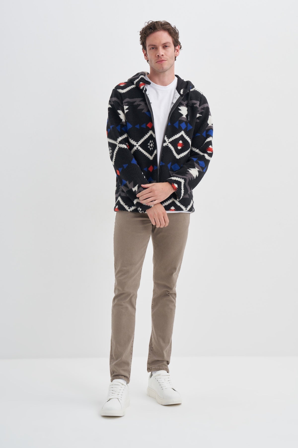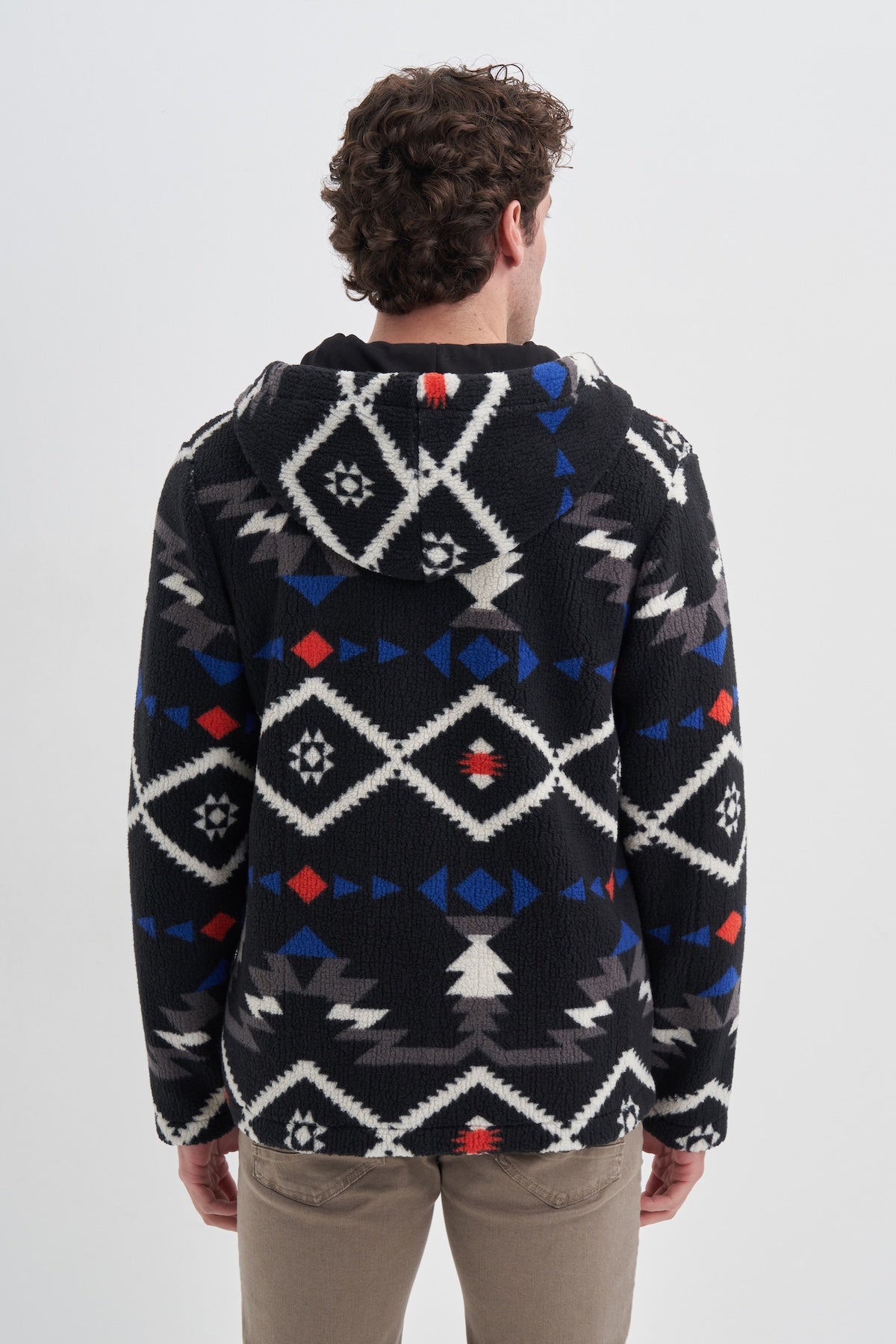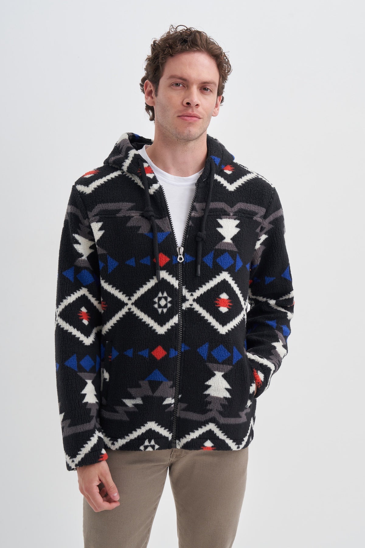Vintage Desenli Kürklü Regular Fit Kapüşonlu Sweat Hırka