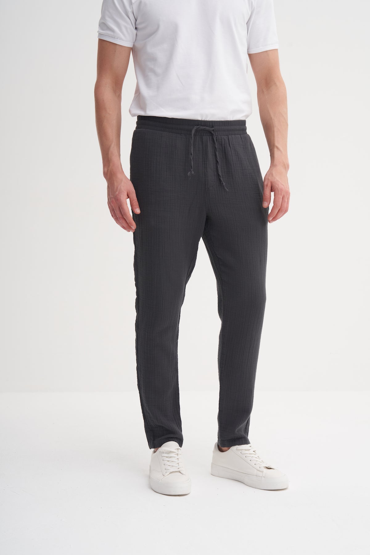 Jogger Pamuklu Müslin Pantolon Beli Bağcıklı Düz Paça 0025 - Cazador