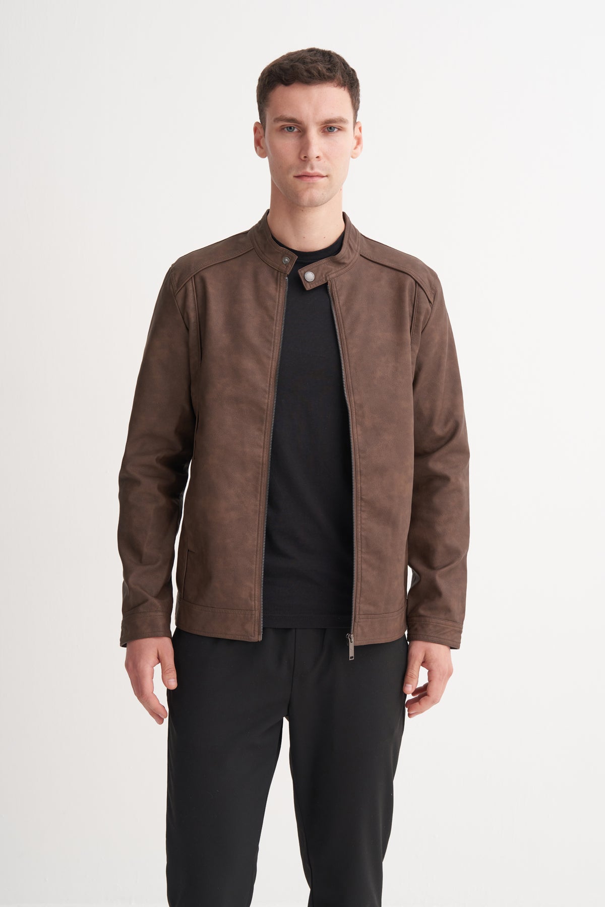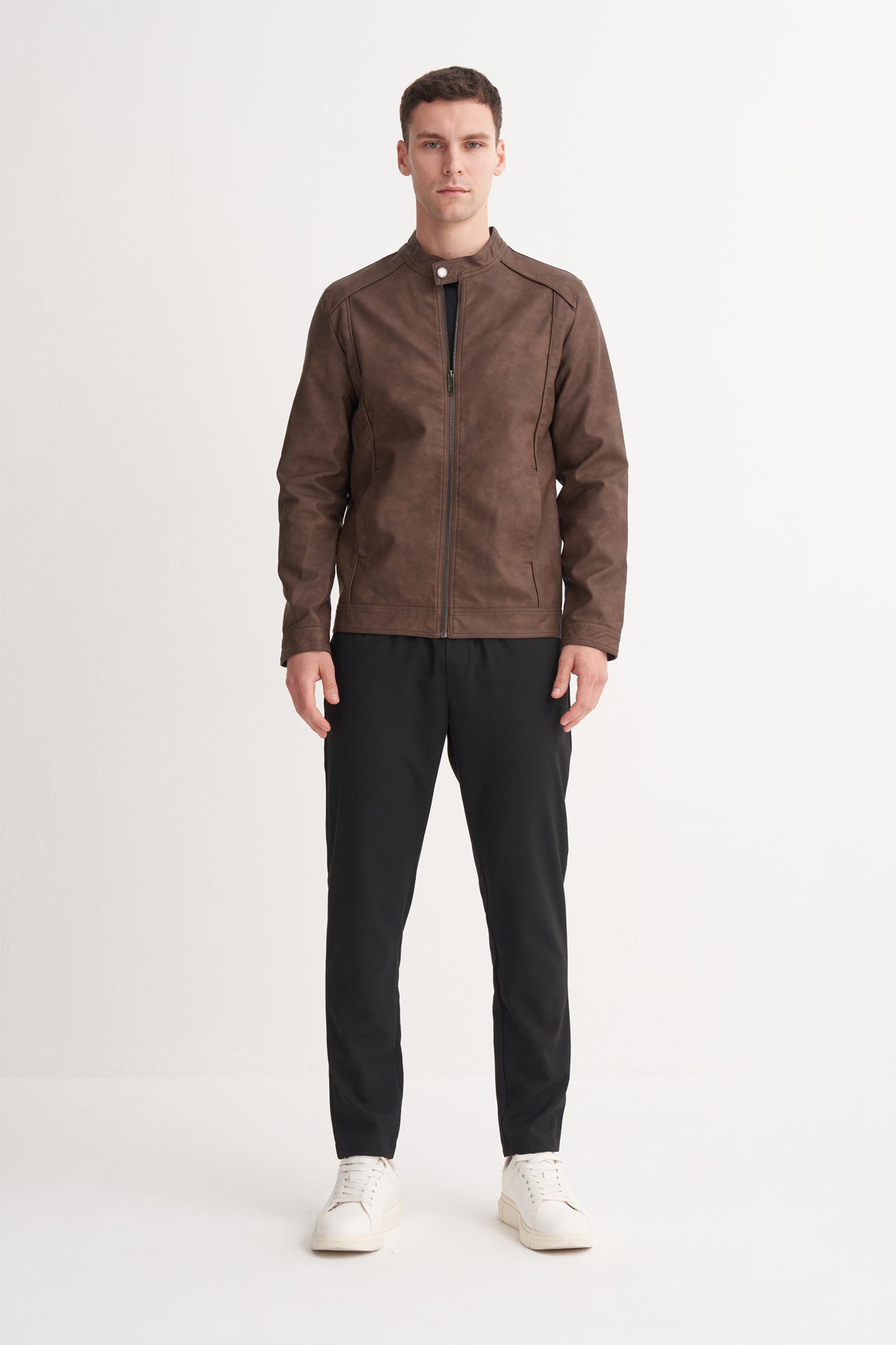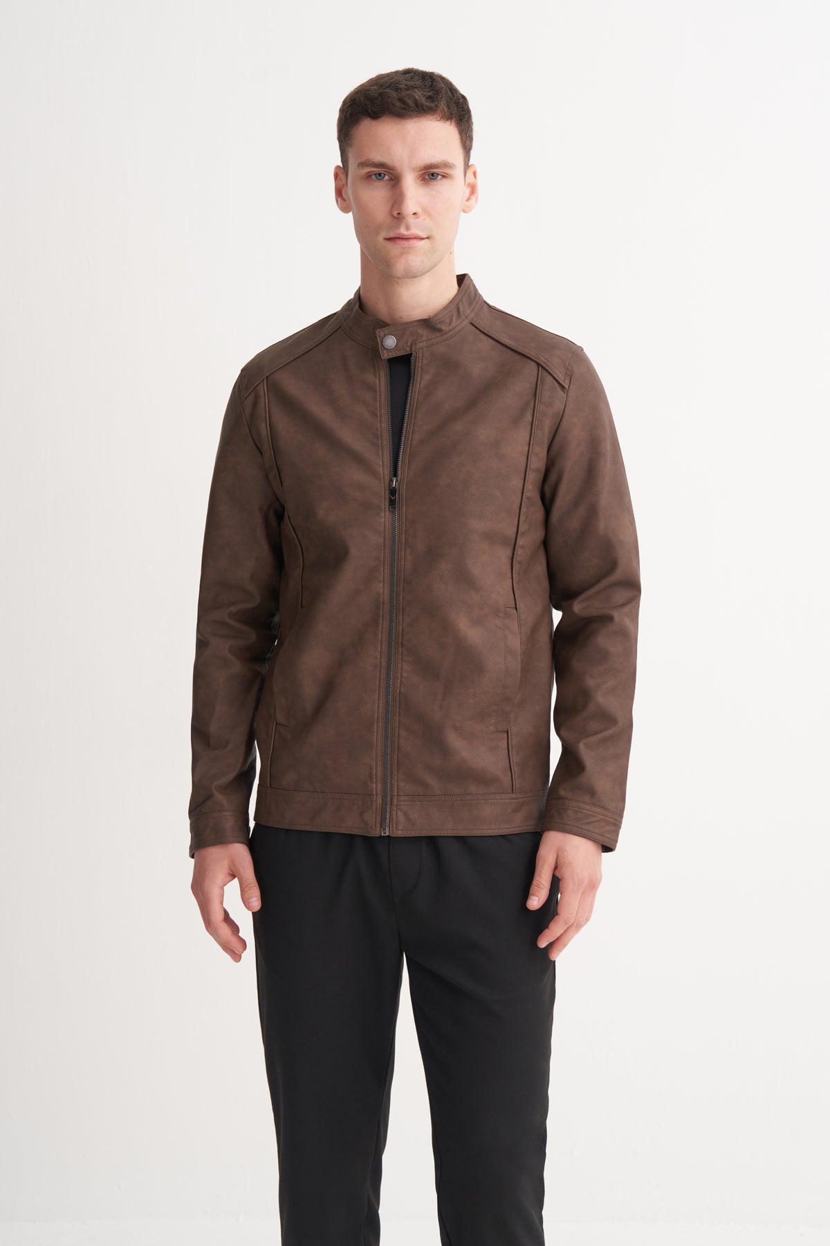 PU Deri Karışımlı Regular Fit Motor Mont
