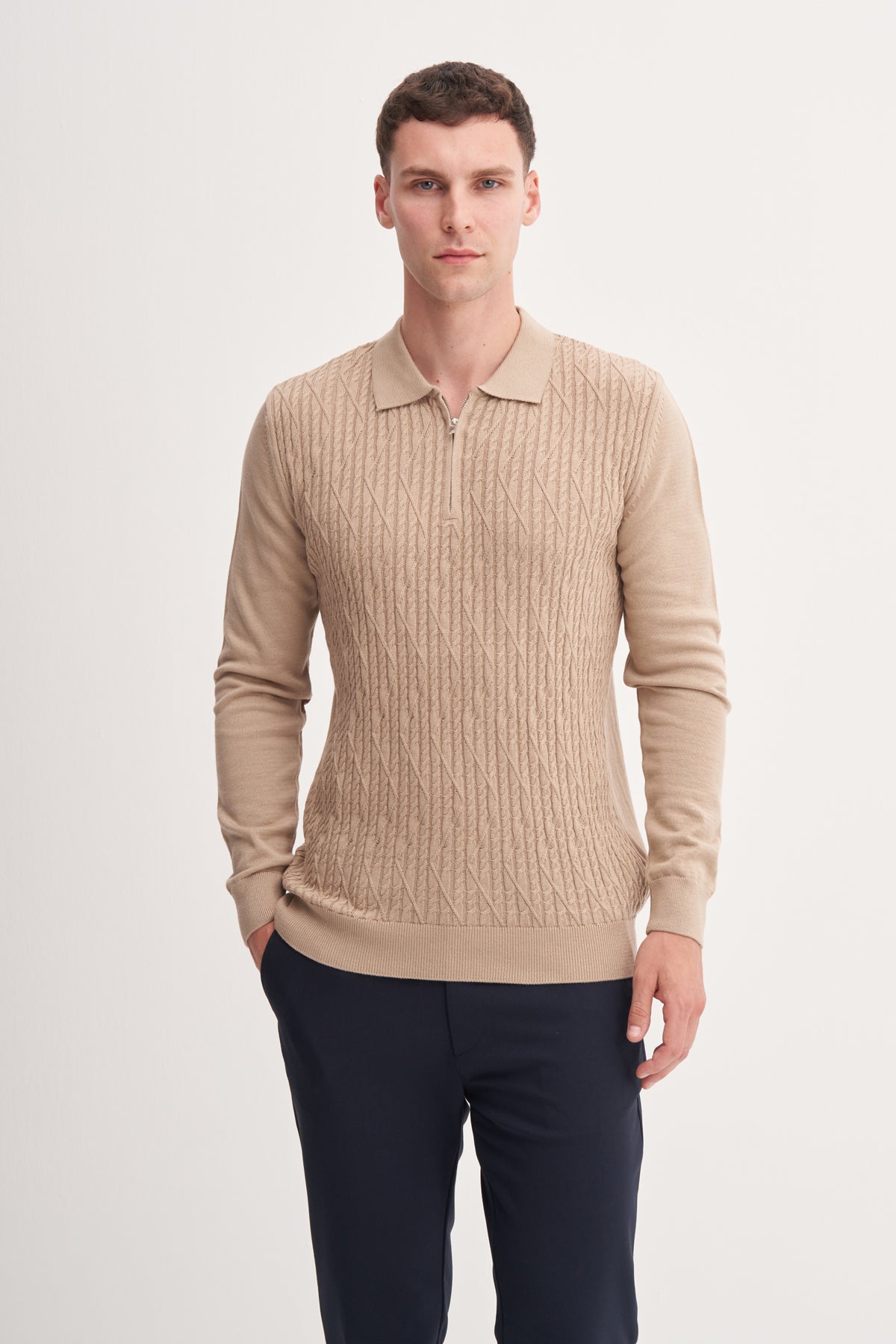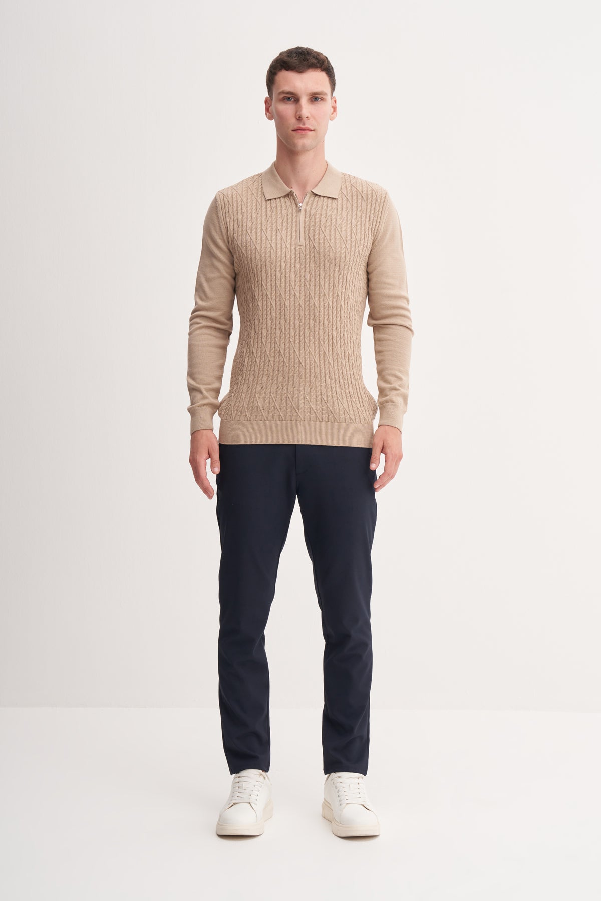Slim Fit Cotonel Pamuk Akrilik Premium Polo Yaka Kazak