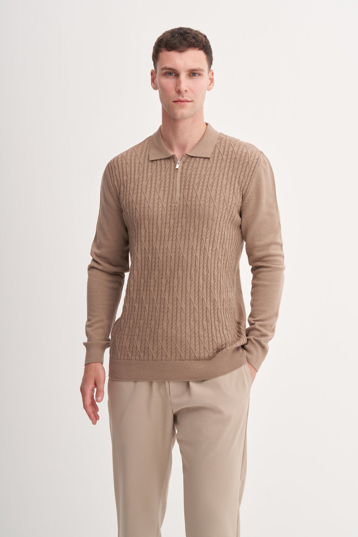 Slim Fit Cotonel Pamuk Akrilik Premium Polo Yaka Kazak-33040
