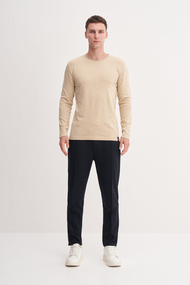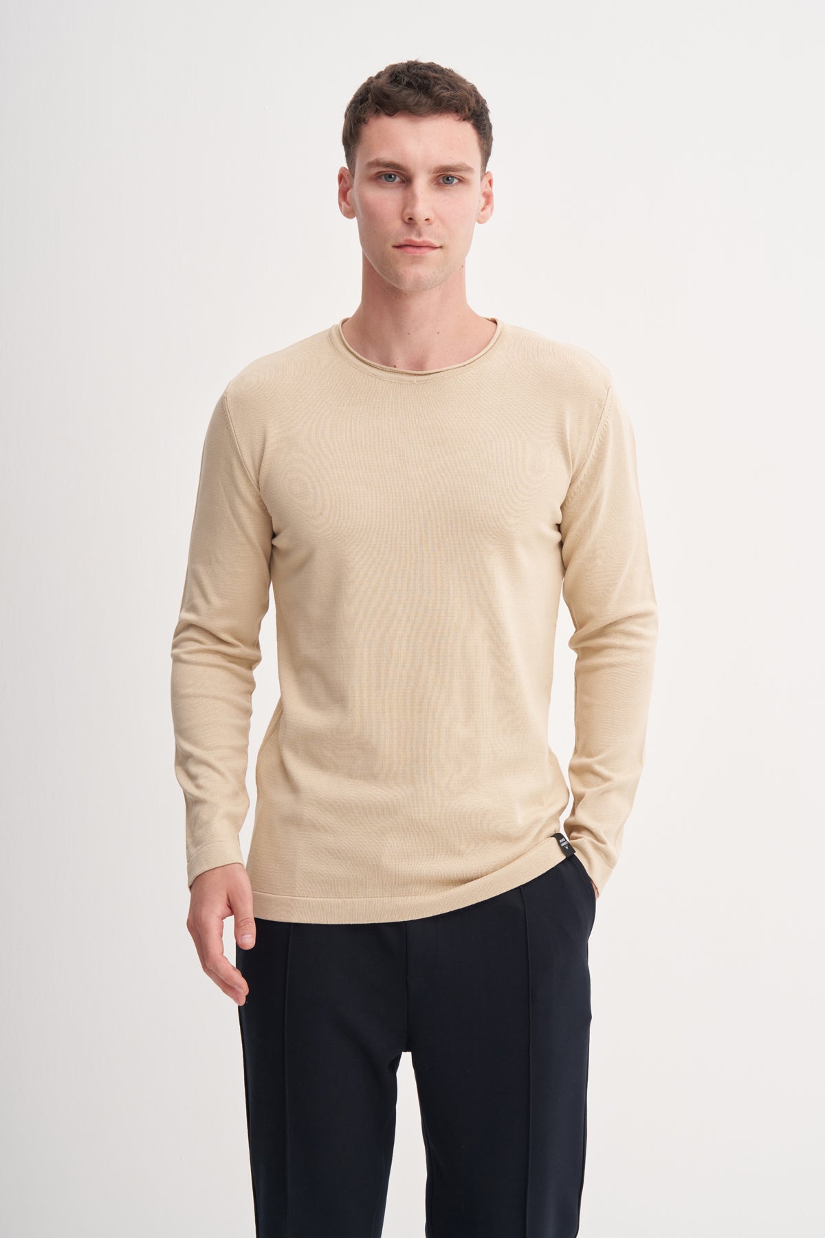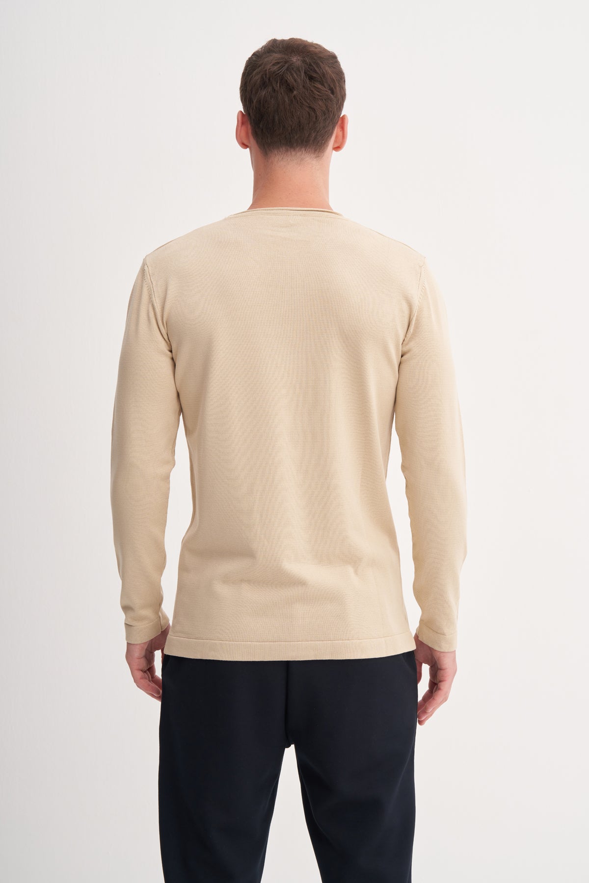 Slim Fit Cotonel Pamuk Karışımlı Vintage Bisiklet Yaka Kazak