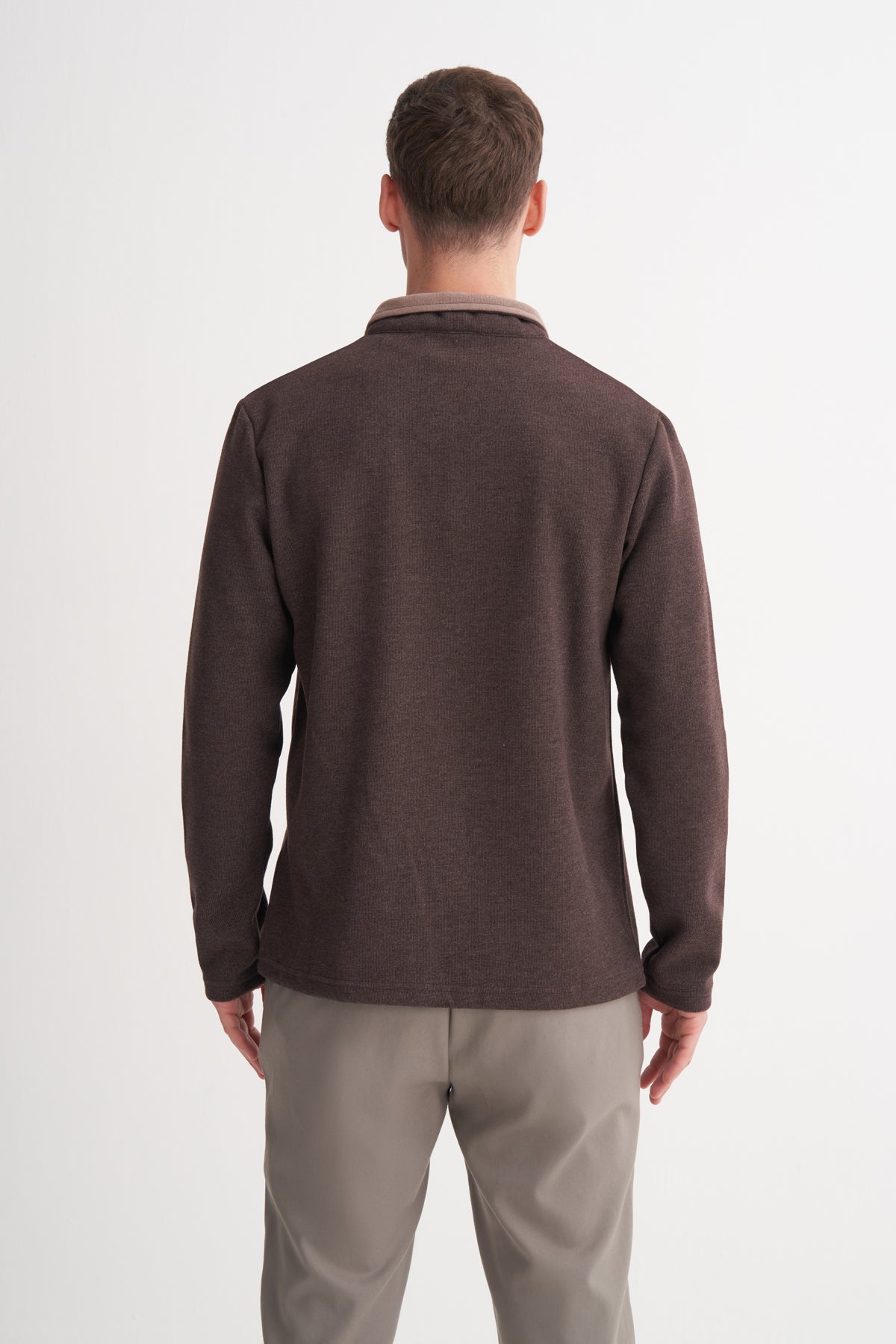 Slim Fit Dik Yaka Pamuk Karışımlı Selanik Sweatshirt