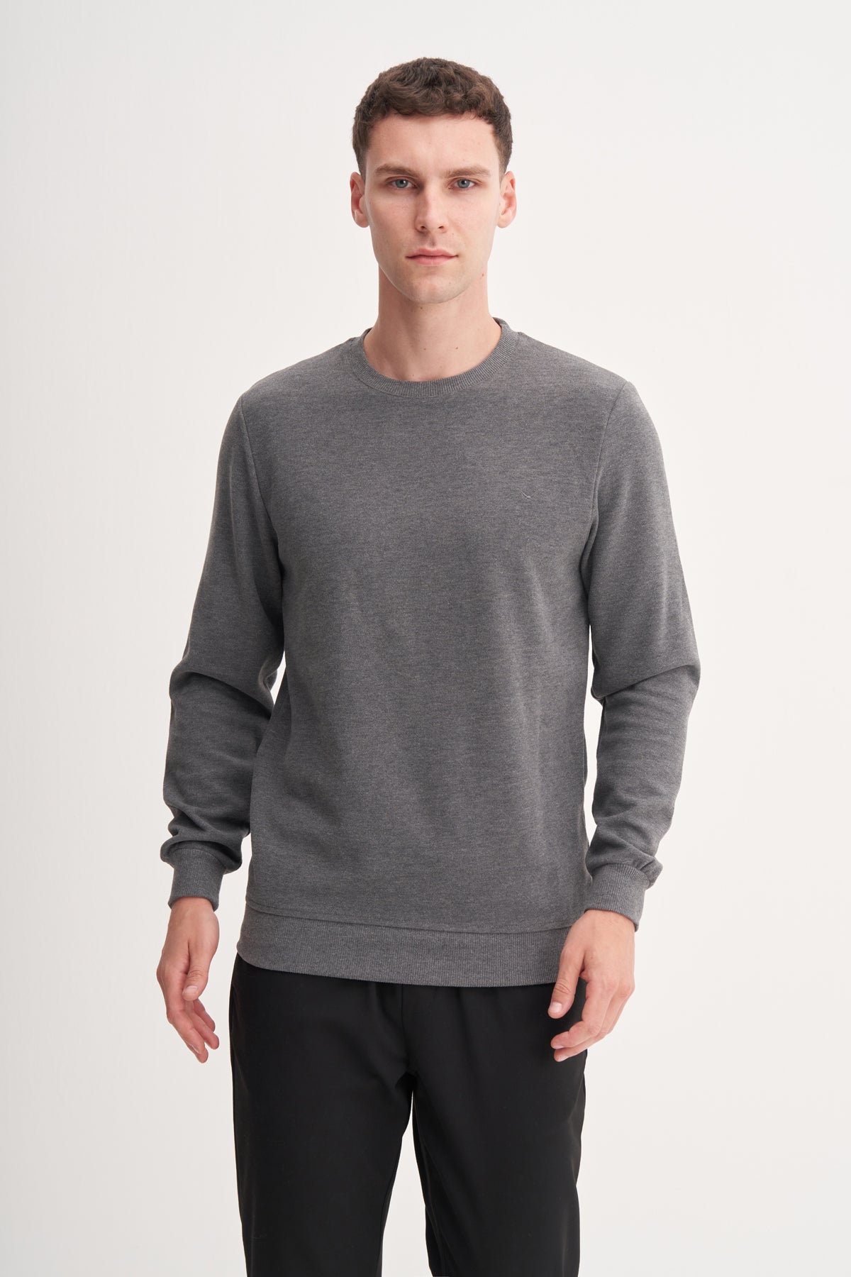 Slim Fit Pamuk Karışımlı Selanik Örgü Sweatshirt
