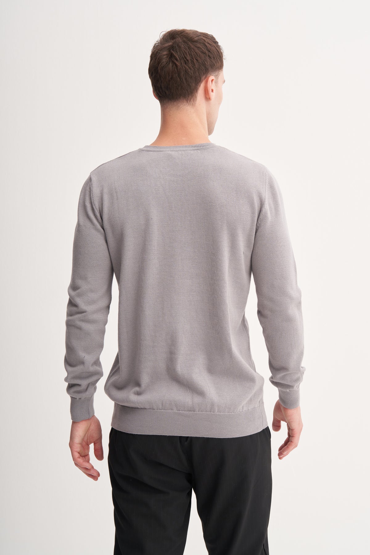 Slim Fit Pamuk Kumaş Basic Bisiklet Yaka Kazak
