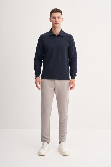 Slim Fit Polo Yaka Pamuk Karışımlı Selanik Sweatshirt - 56460 - Cazador