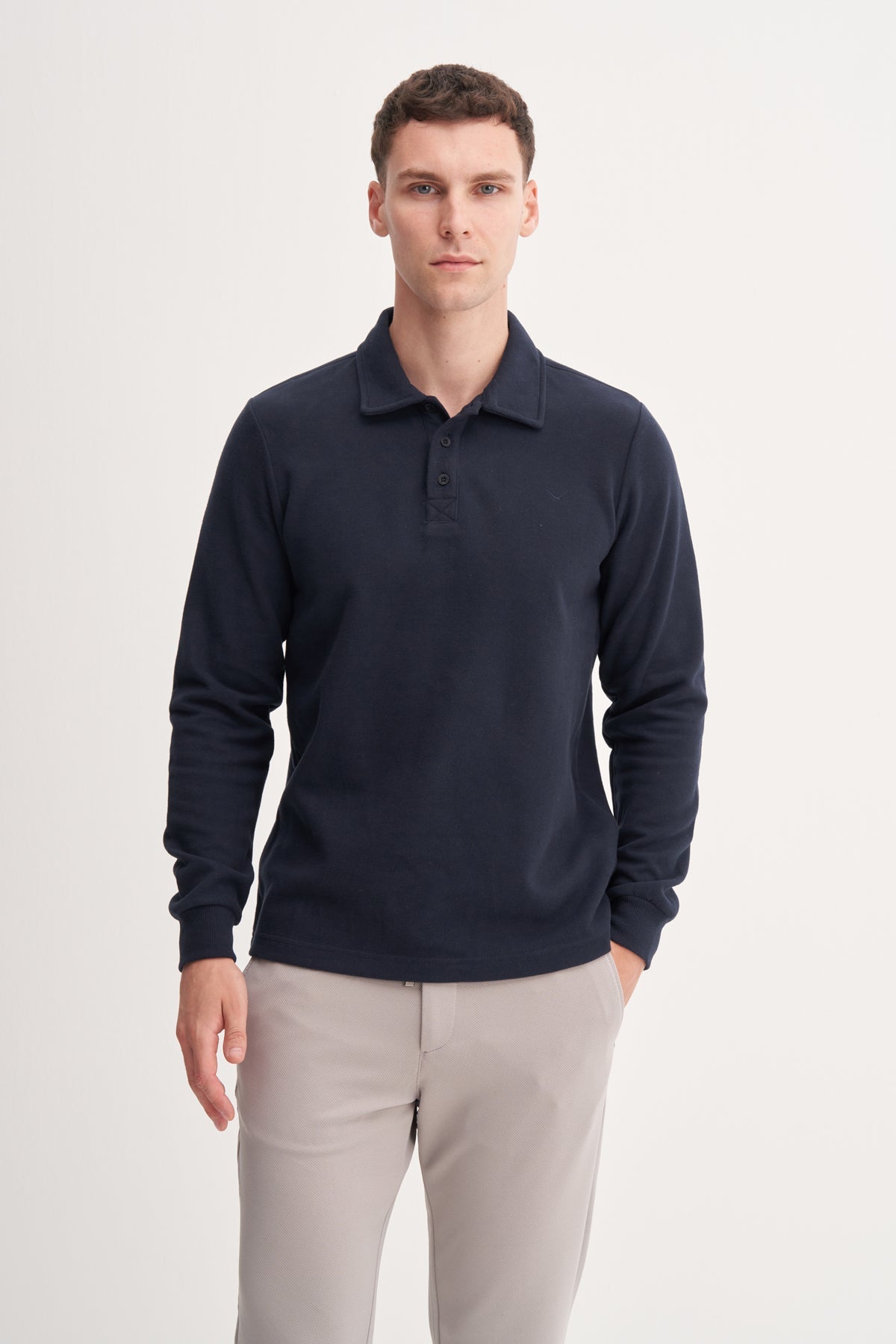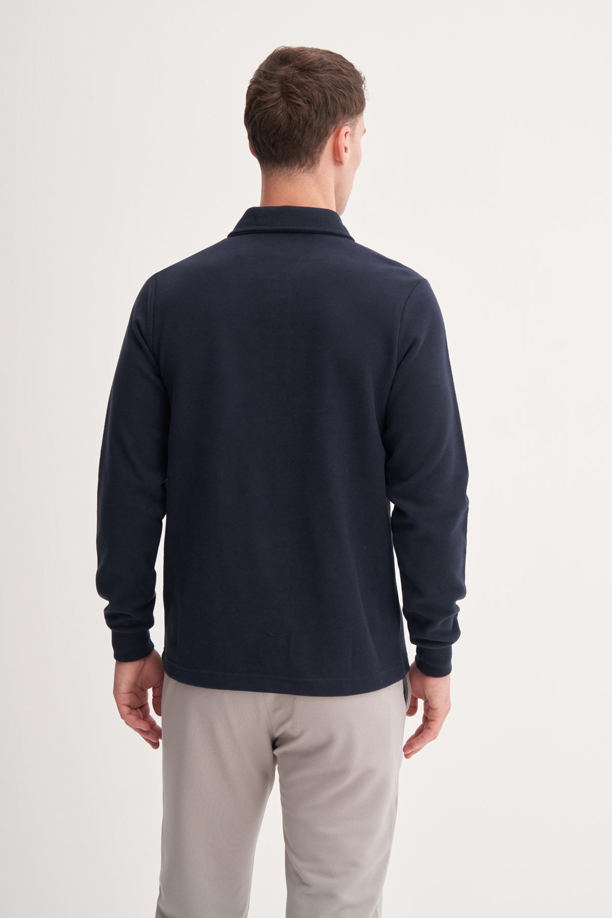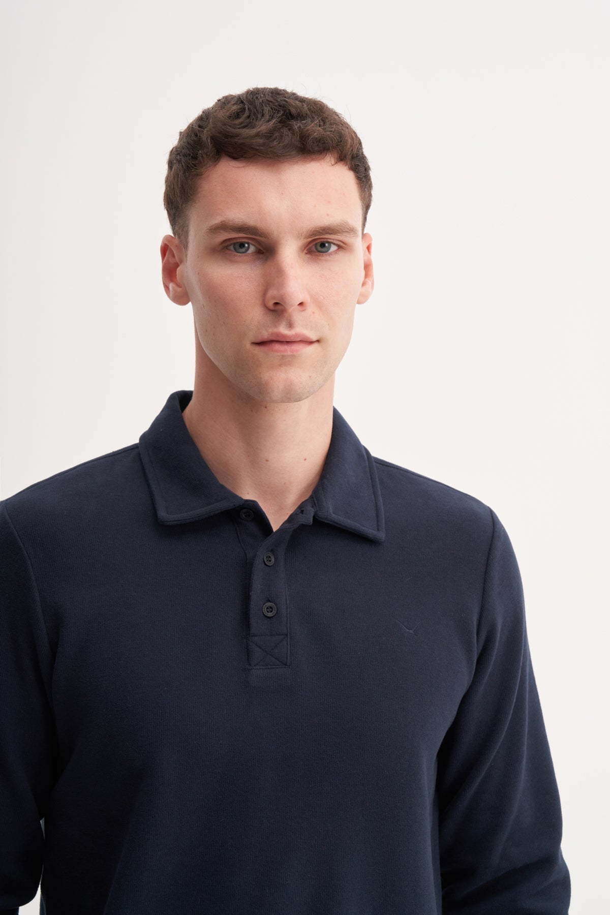 Slim Fit Polo Yaka Pamuk Karışımlı Selanik Sweatshirt-56460