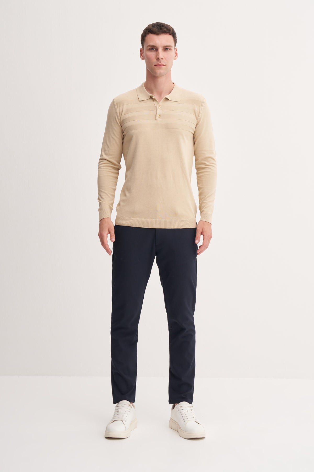 Slim Fit Viskon Karışımlı Basic Polo Yaka Kazak
