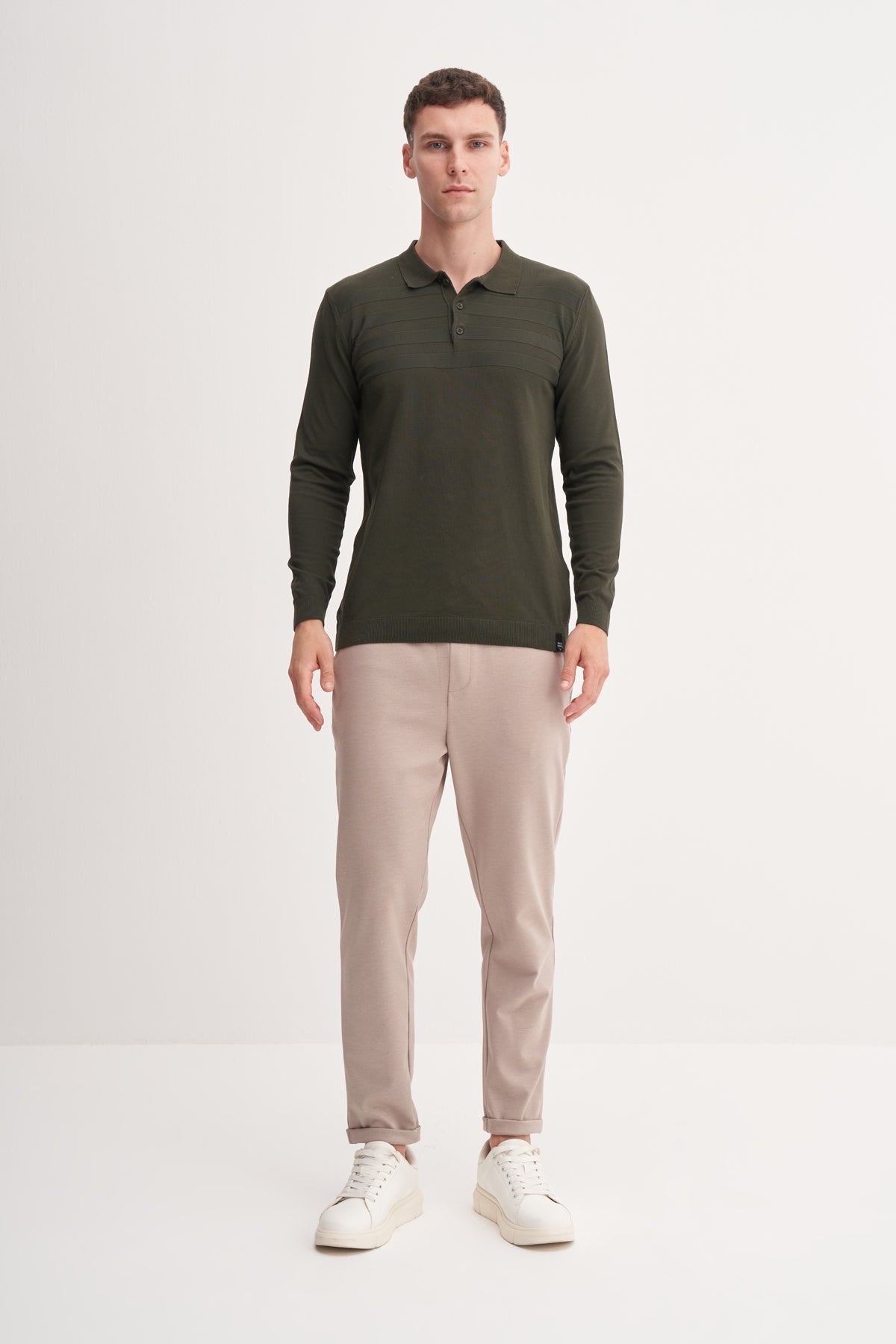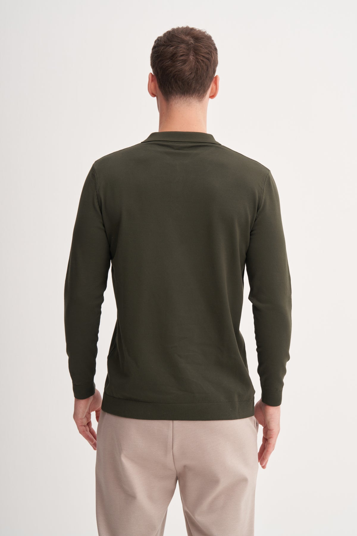 Slim Fit Viskon Karışımlı Basic Polo Yaka Kazak