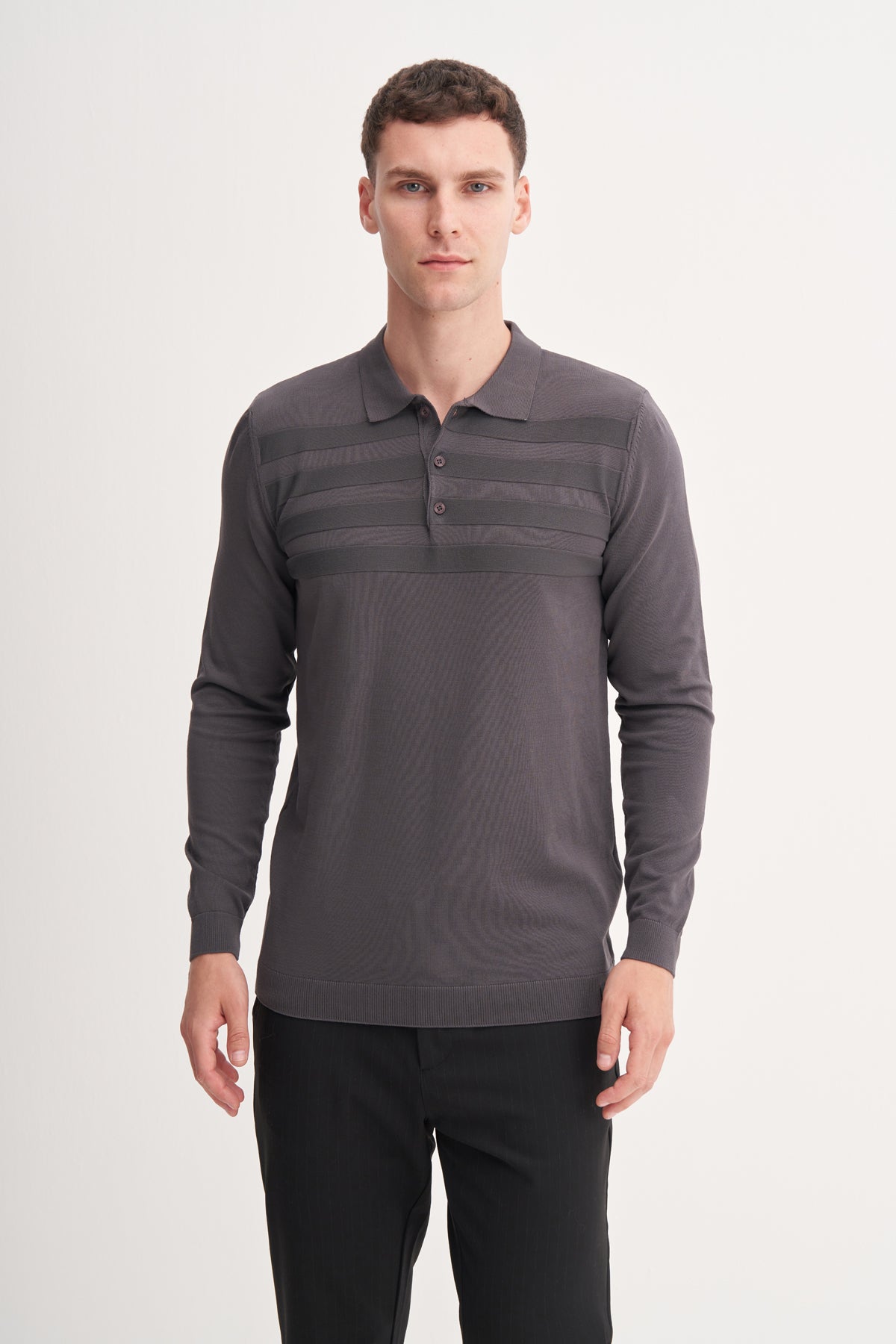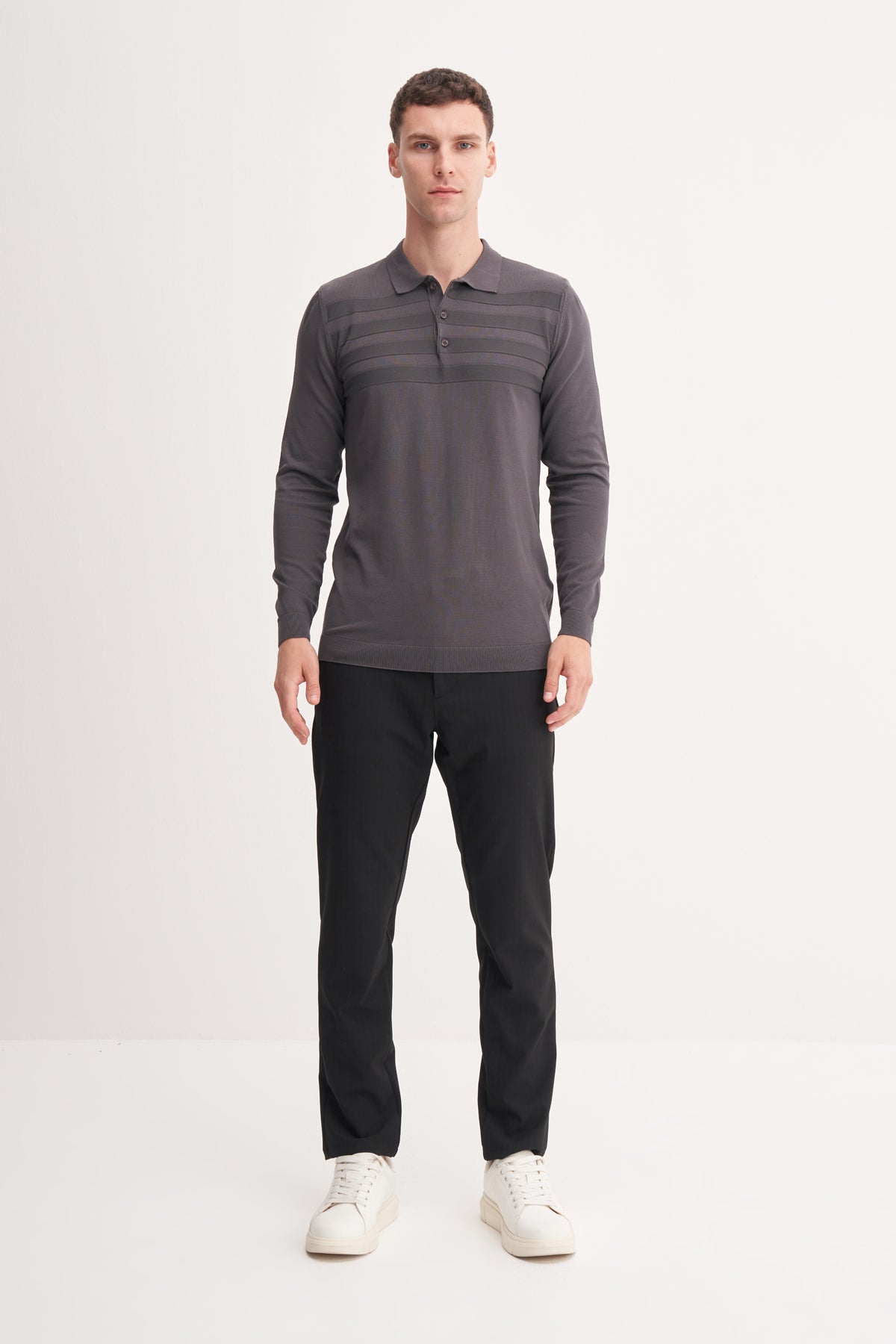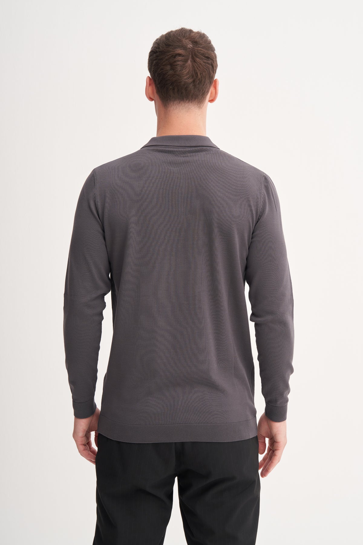 Slim Fit Viskon Karışımlı Basic Polo Yaka Kazak