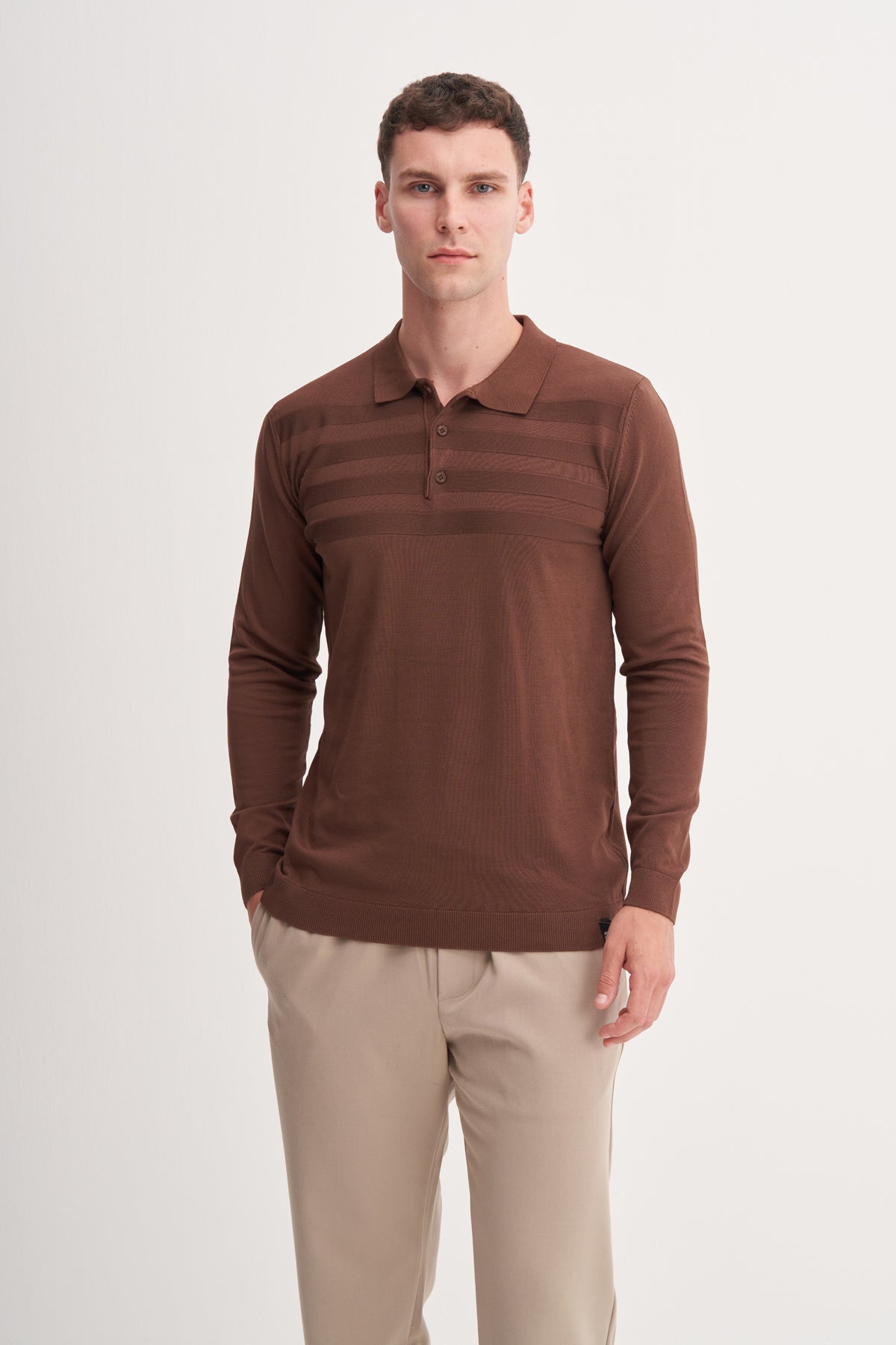 Slim Fit Viskon Karışımlı Basic Polo Yaka Kazak